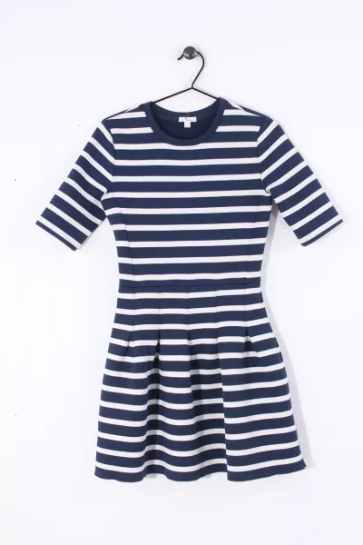 granatowo-biała sukienka w paski