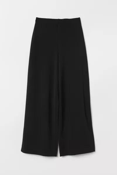Szerokie spodnie z grubego dżerseju. Kryta elastyczna talia, proste nogawki.
