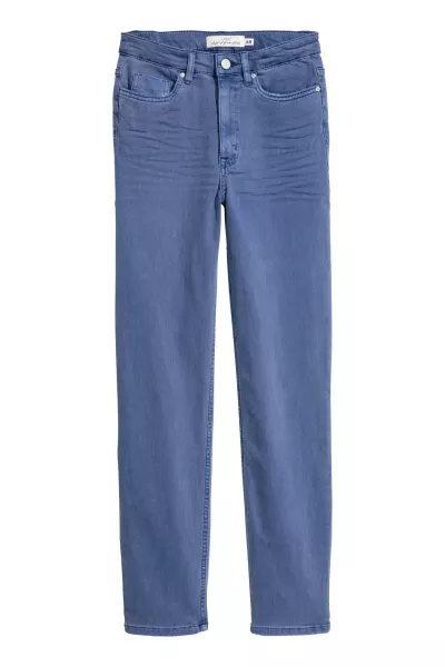 Spodnie z 5 kieszeniami z elastycznego spranego diagonalu o spranym wyglądzie. Wysoka talia, rozporek na suwak i zwężane nogawki.