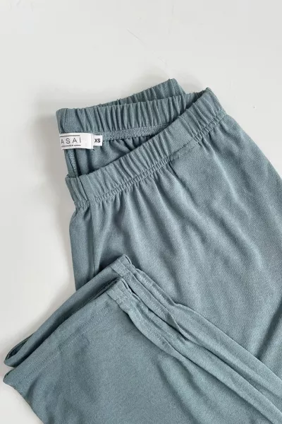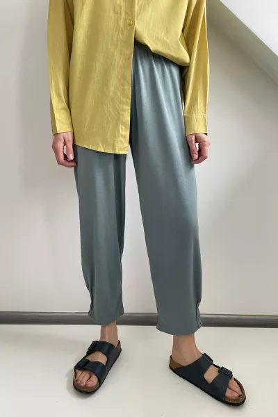 Spodnie z tkaniny o wzorzystym splocie. Normalna talia, rozporek na suwak, kieszenie po bokach, z tyłu atrapy kieszeni z wypustką. Szerokie nogawki z kantem.Poliester 98%, Elastan 2%