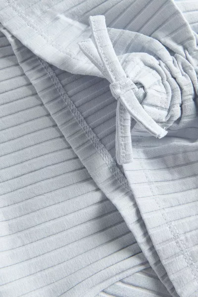 Kostium bikini z materiału o strukturalnej powierzchni składający sie z topu i majtek. W całości z podszewką. Top ma szerokie ramiączka, dekolt karo, plastikowe zapięcie z tyłu.nowy